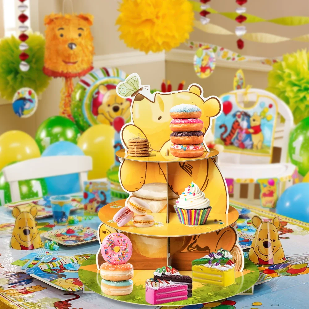 Soporte para cupcakes con forma de oso de miel de 3 capas, bonito soporte para tartas con forma de oso de miel amarillo de cartón para baby shower, fiesta de cumpleaños, actividad para niños