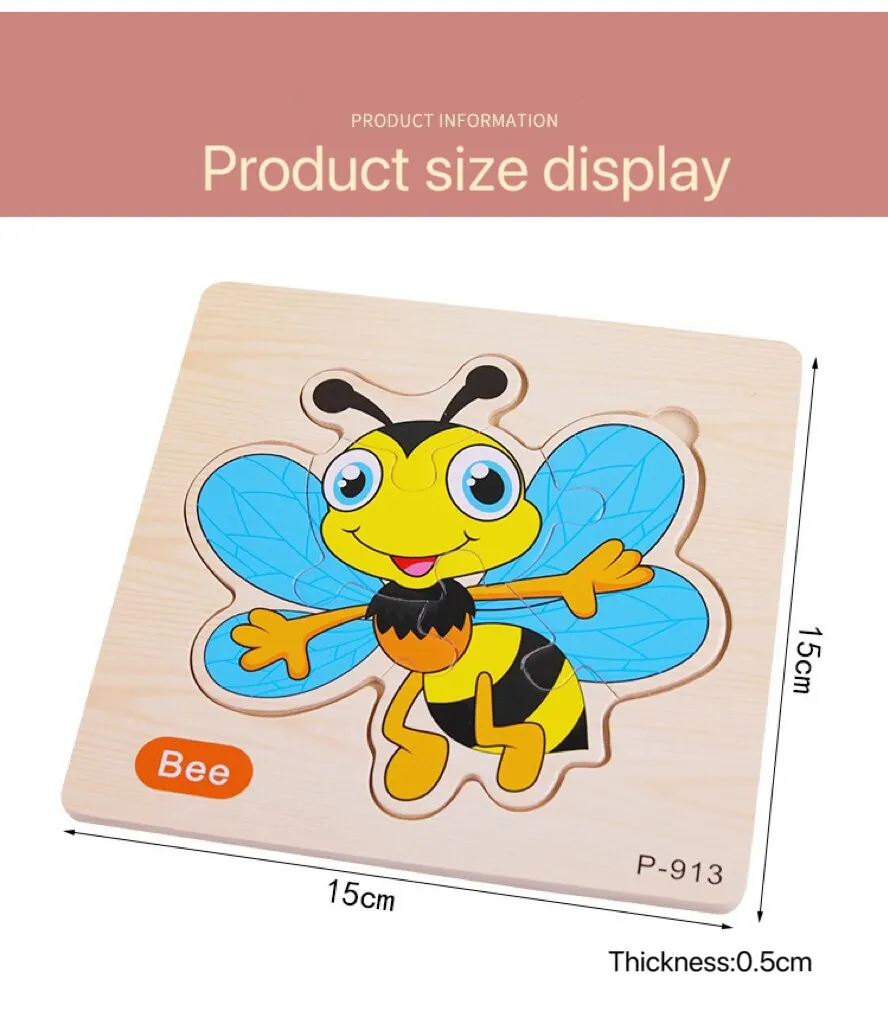 Nombre del producto: Rompecabezas 3D de animales de dibujos animados de madera