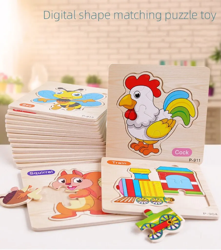 Rompecabezas de 3 piezas de colores aleatorios en 3D, juguetes de educación temprana, rompecabezas de animales de dibujos animados de madera, rompecabezas infantil, juguetes de tablero