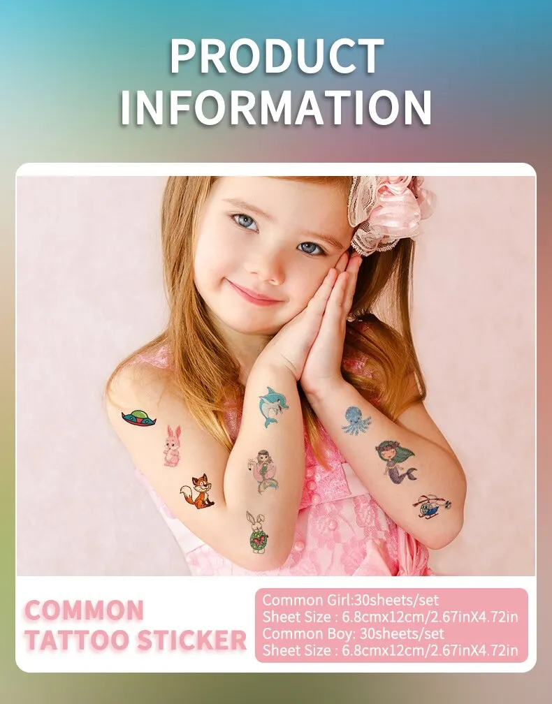 • 30 pegatinas para tatuajes: obtén un paquete de 30 pegatinas para tatuajes con diseños lindos y únicos que a los niños les encantarán.