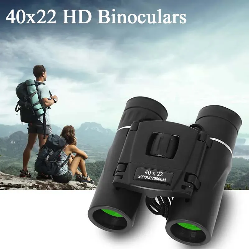 Binoculares potentes HD 40x22 de 2000 m de largo alcance, telescopio súper mini plegable, óptica para caza, deportes, acampada al aire libre, viajes
