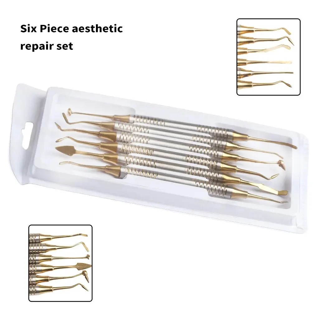 6Pcs Dental Composite Resin Filling Spatulas Double Head Titanium Plated Head Fill Restoration Set Dentist Accessories