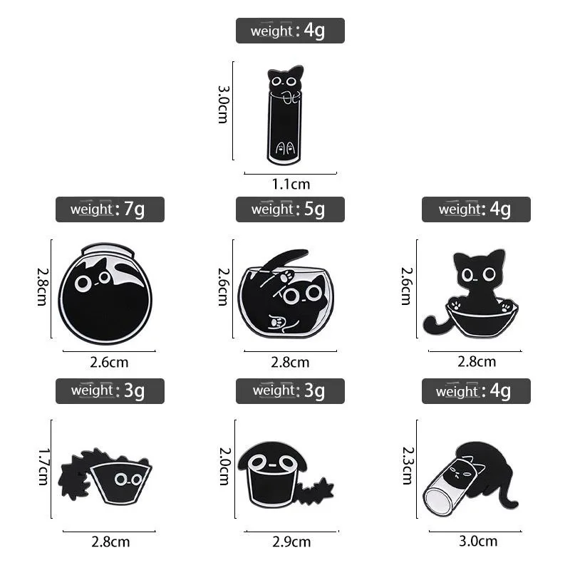 7 piezas/bonitos alfileres de esmalte de gato, broches de terrario de gatito negro personalizados, insignias de solapa, joyería de animales de dibujos animados, regalo para niños y amigos