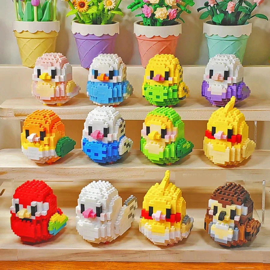 Dibujos animados creativos de bricolaje: pájaros, loros, gorriones, bloques de construcción de animales, juguetes modelo para armar pájaros, regalos para la decoración del hogar