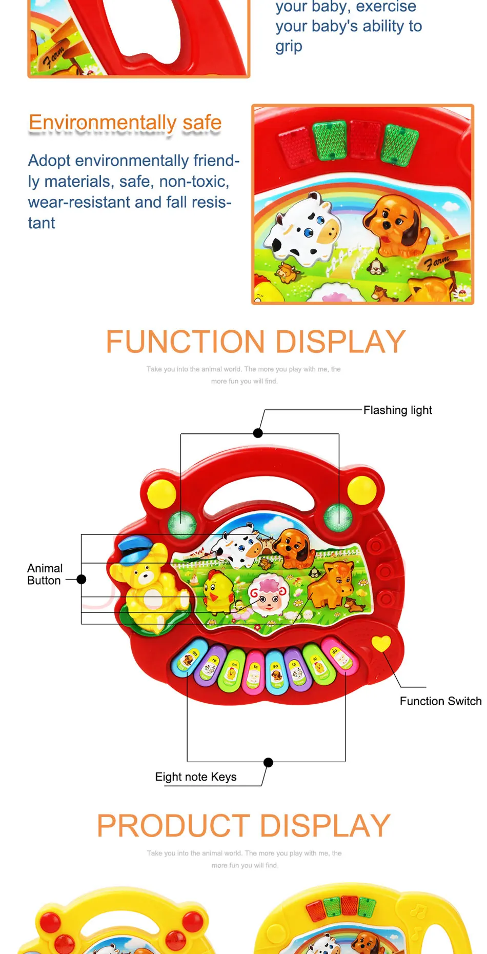 Teclado de juguete con sonido de animales de granja para niños, instrumentos musicales de piano, con sonidos de animales, para bebés, educativo e interactivo