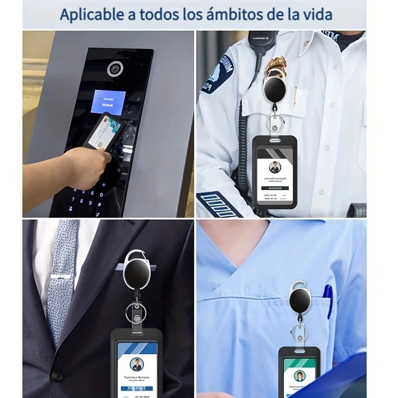 Porta credencial de identificación con clip de carrete de mosquetón resistente, porta credencial retráctil negro, porta credencial de identificación vertical para mujeres y hombres.