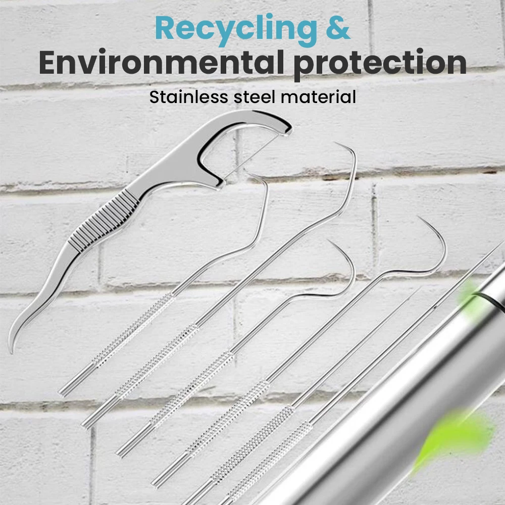 Artefacto de palillo de dientes de acero inoxidable, juego de ganchillo dental, herramienta de selección dental, artefacto de tapón dental, aguja de hilo dental portátil