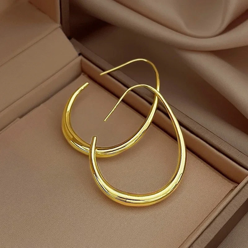 Pendientes sencillos con gancho y clip para mujer, de estilo sencillo, de color dorado brillante, de metal, para vacaciones, joyería francesa para uso diario
