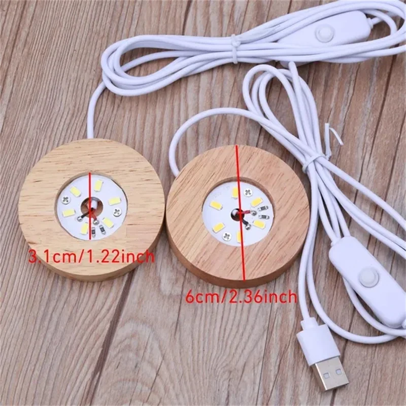 1/2/3/4PCS Handmade LED Wood Resin Display Base USB Round Wooden Night Lamp Base Bedroom Resin Ornament Stand DIY Night Light