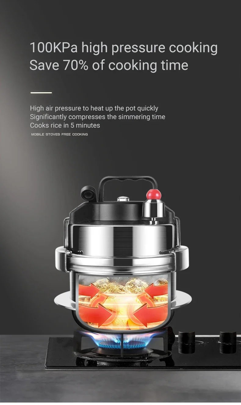 1.6L 2L Small Pressure Outdoor Camping Cooker 304 Stainless Steel Portable Rice Cooker Kitchen Cooking Tool Quick Cooking Pot