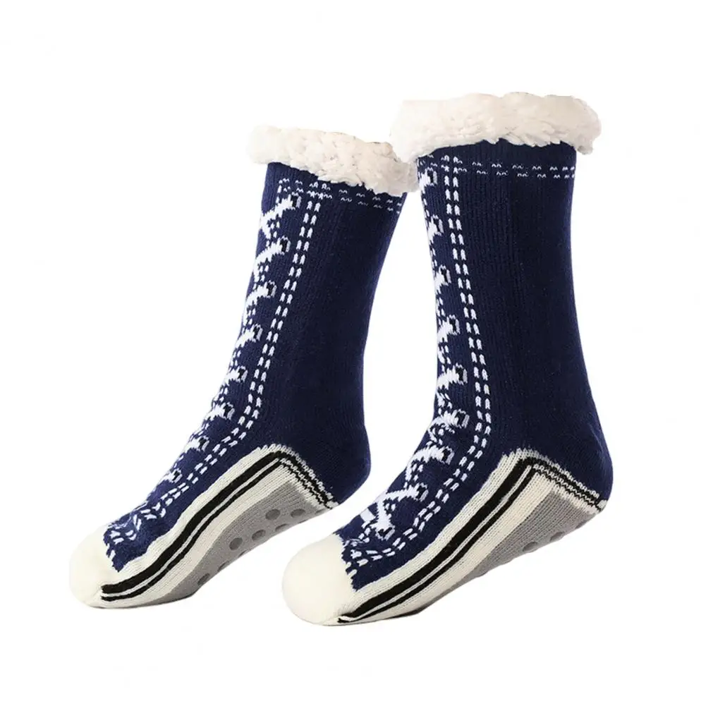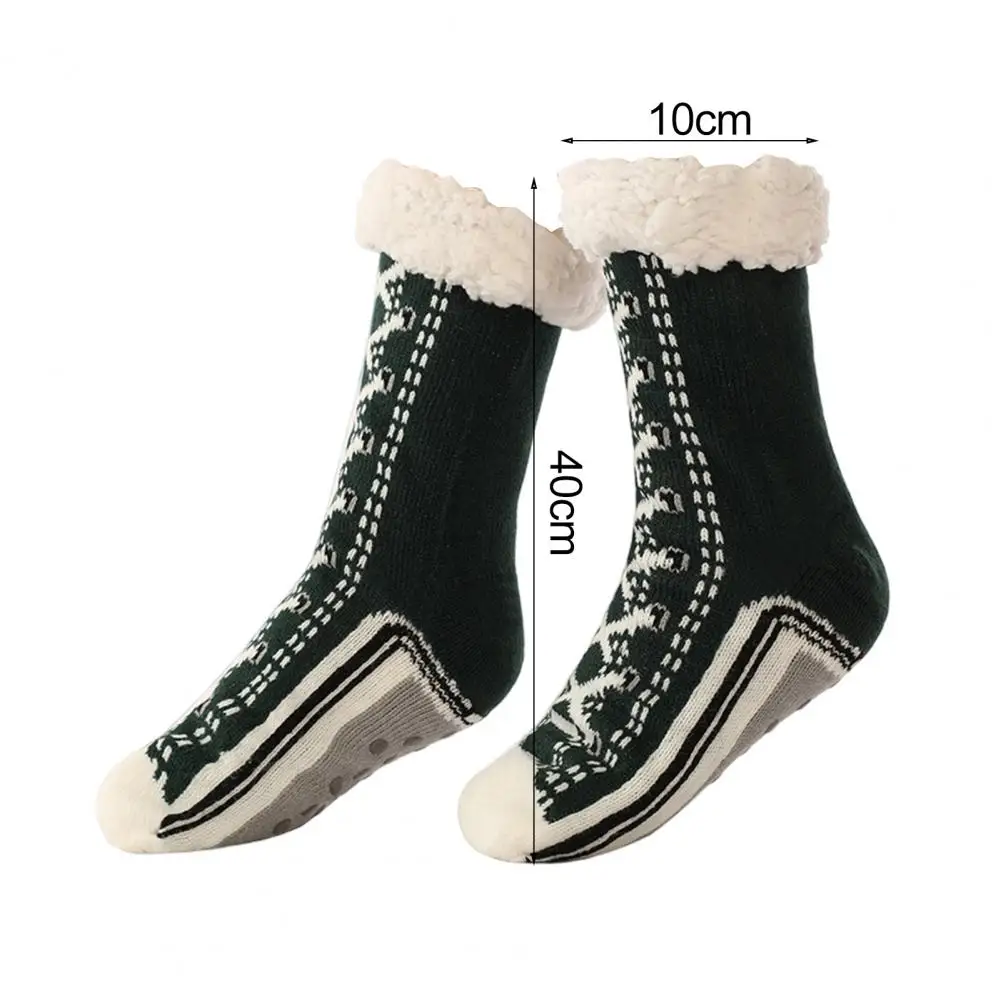 1 Pair Winter Socks Shoes Pattern Plush-lined Warmth Retention Christmas High-tube Socks Leg Warmer Fall Winter Floor Socks Holi