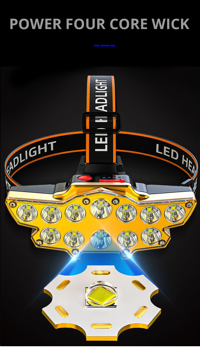 12Led Head-Mounted Flashlight Headlight Outdoor Night Fishing Waterproof Rechargeable Miner's Lamp Strong Light Headlight
