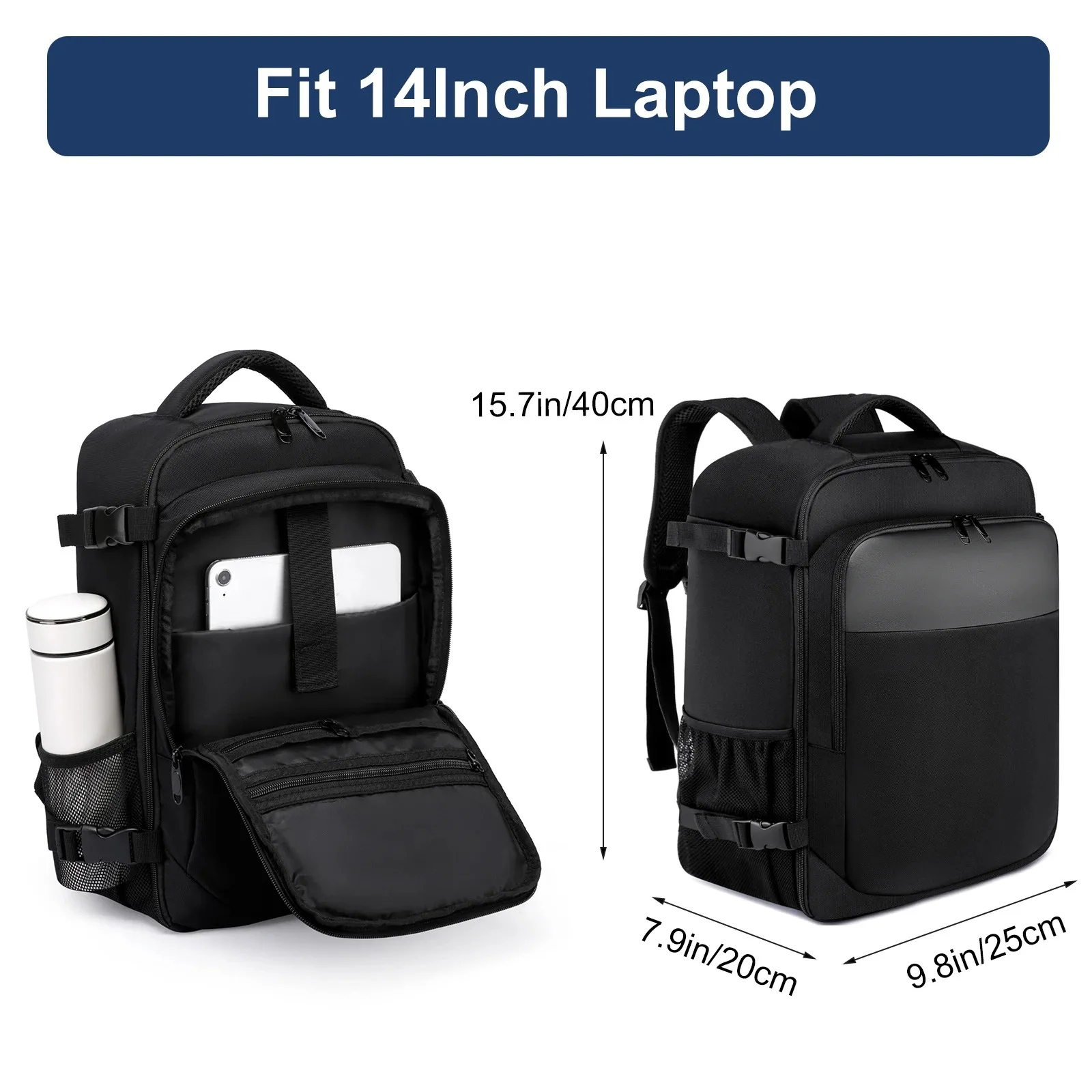 14/15.6 Inch Laptop Backpack Men's Multifunctional Simple Business Backpack Airline Approved Carry-On Cabin Carry-on Bag Black