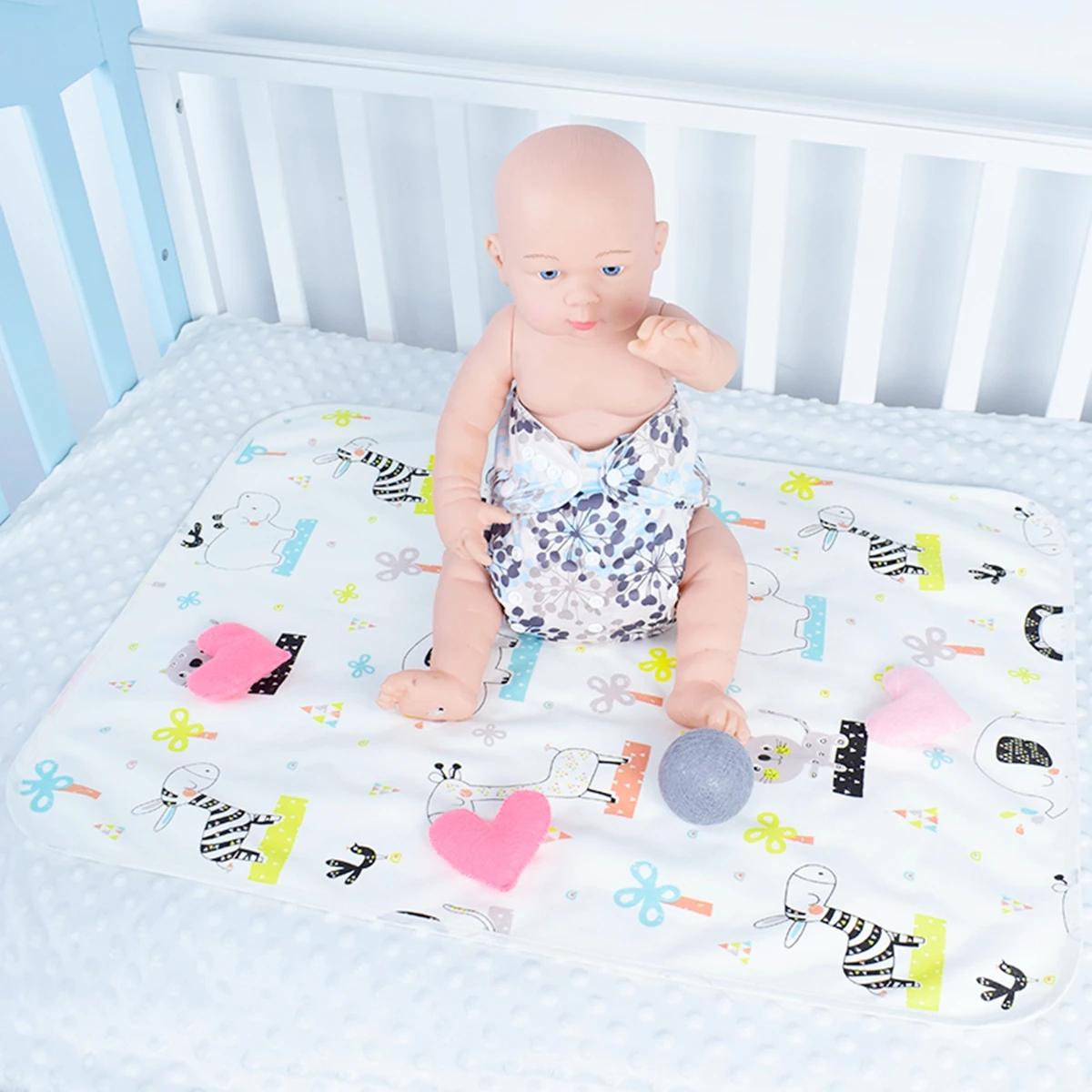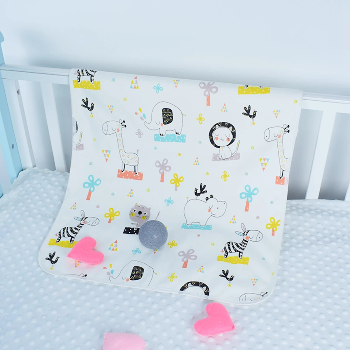 Material: 1 layer cotton printing on top + 1 layer waterproof in middle +1 layer bamboo on buttom