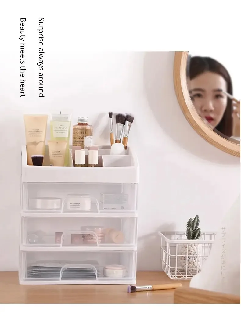 1pc Transparent Plastic Four Layer Three Drawer Desktop Drawer Style Cosmetic Storage Box Dressing Table Storage Rack