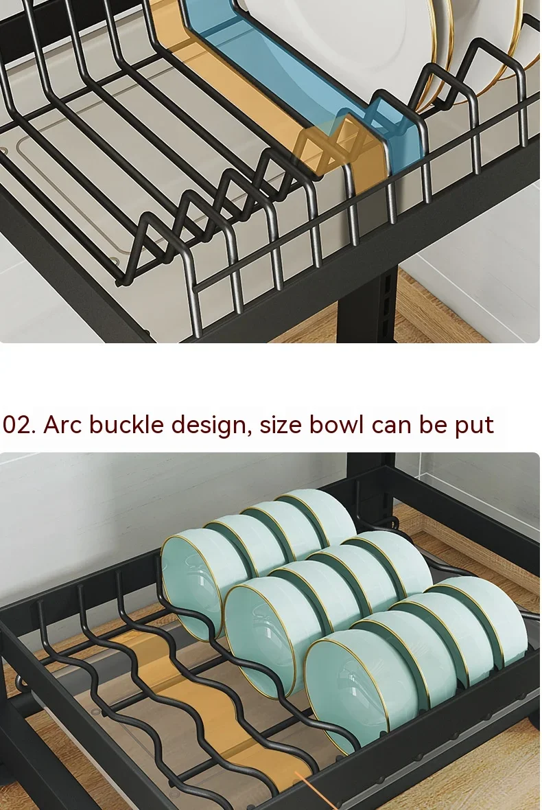【2/3 Tier Dish Rack:】 Larger capacity, easy for accommodating cutlery for three meals a day or more. Upper Separate Slots: Humanized for storing plates and bowls, much stabler. Reasonable spacing, suitable for placing different sizes of dishes. Middle layer drain basket, bowls can be placed vertically or horizontally.