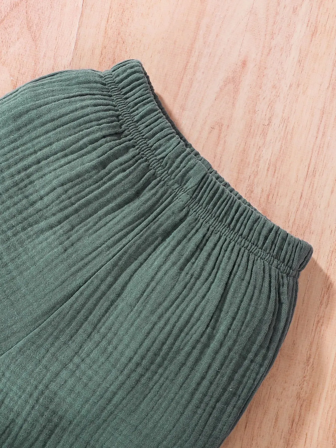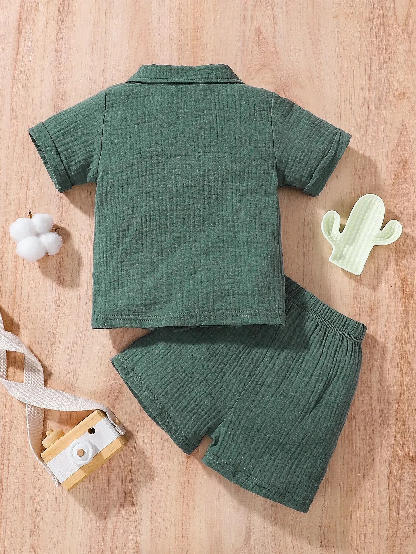 2-Piece Summer Solid Color Casual Shirt for Boys and Girls Fresh and Comfortable Cotton Shorts Set