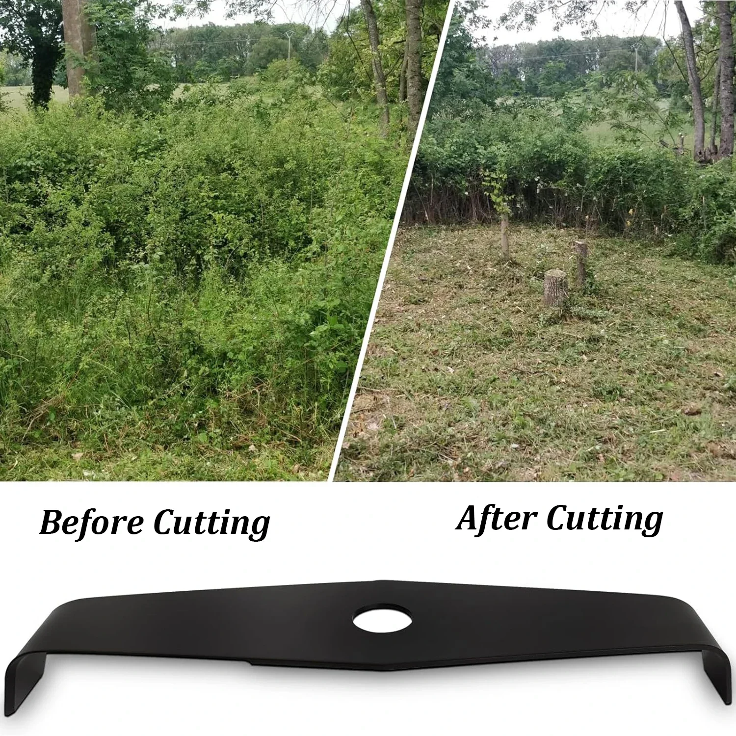 This weed eater blade works great at cutting down and mulching brush like blackberries bushes, vines, weeds, densely grass, oak, or bramble on your property.