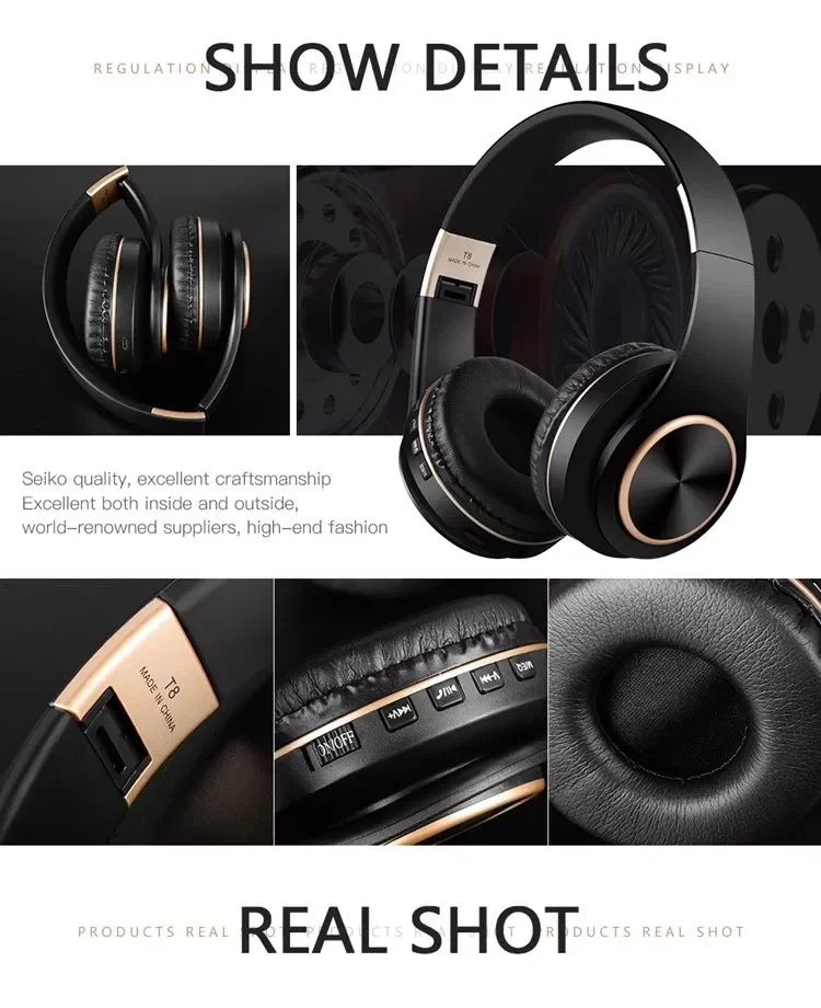2024 Foldable Hi-Fi Gaming Headphone Stereo Subwoofer IPX4 Waterproof Portable Bluetooth 5.0 Wireless Over-Ear Earphone with Mic