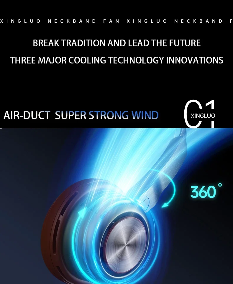 2024 New Super Cool Wearable Air Conditioner 720° Rotatable Hanging Neck Fan Portable Air Cooler Bladeless Neck Fan with 5 Gears