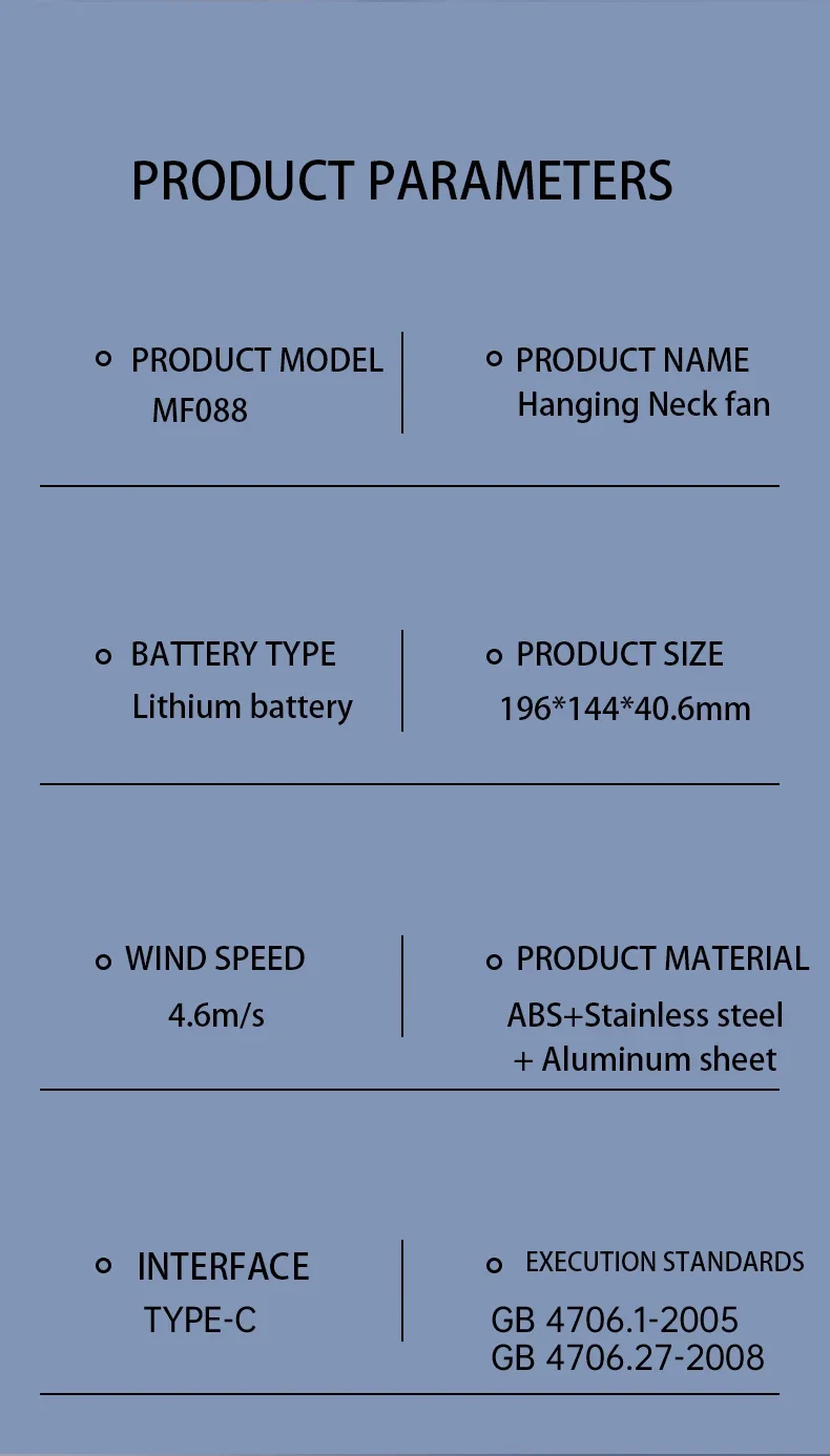 Hanging Neck Fan*1pc, USB cable*1pc, User manual*1pc