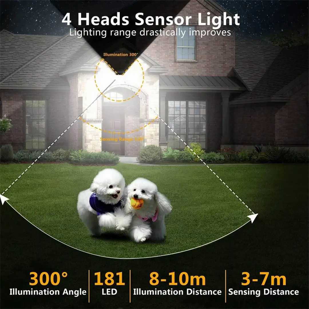 3. Adjustable Lighting Head--Adjustable heads can move upwards, downwards and horizontally. Up to 270° wide lighting angle and 16-26ft sensing distance