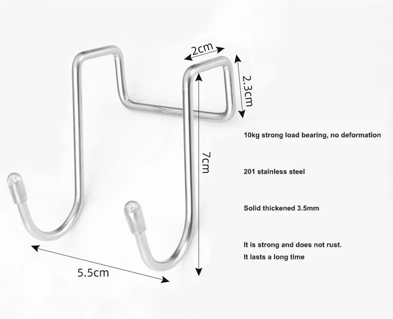 2PC 304 Stainless Steel Hook Free Punching Double S-Shape Hook Kitchen Bathroom Cabinet Door Back Type Coat Towel Storage Hanger