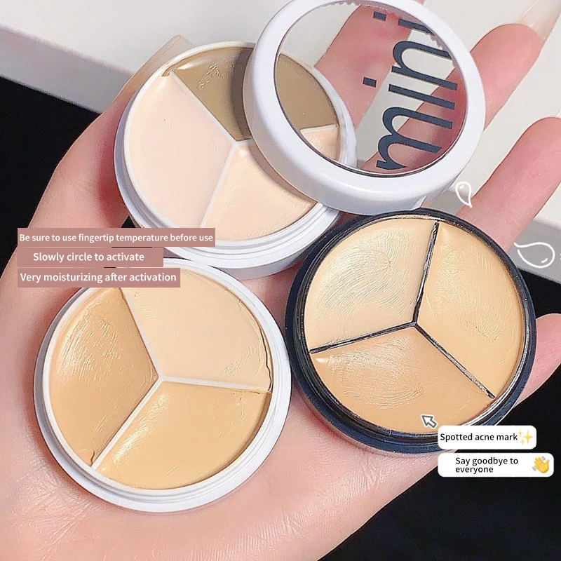 3-Color Concealer Cream Covers Black Circles Red Blood Spots Pimples Wrinkles Brightens Skin Tone Moisture Korean Makeup