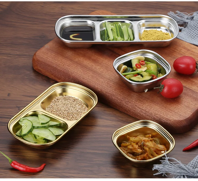 304 Stainless Steel Three Grid Dipping Plate Seasoning Sauce Plate Barbecue Restaurant Tableware Small Seasoning Plate