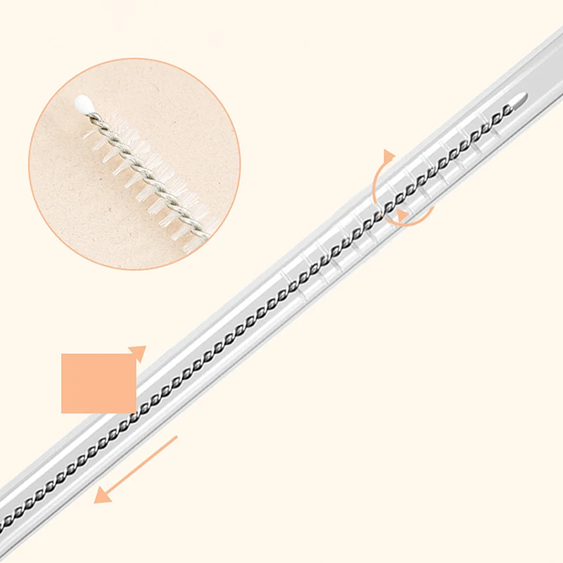 The slender straw brush goes deep into the straw to remove dirt from the inner wall.