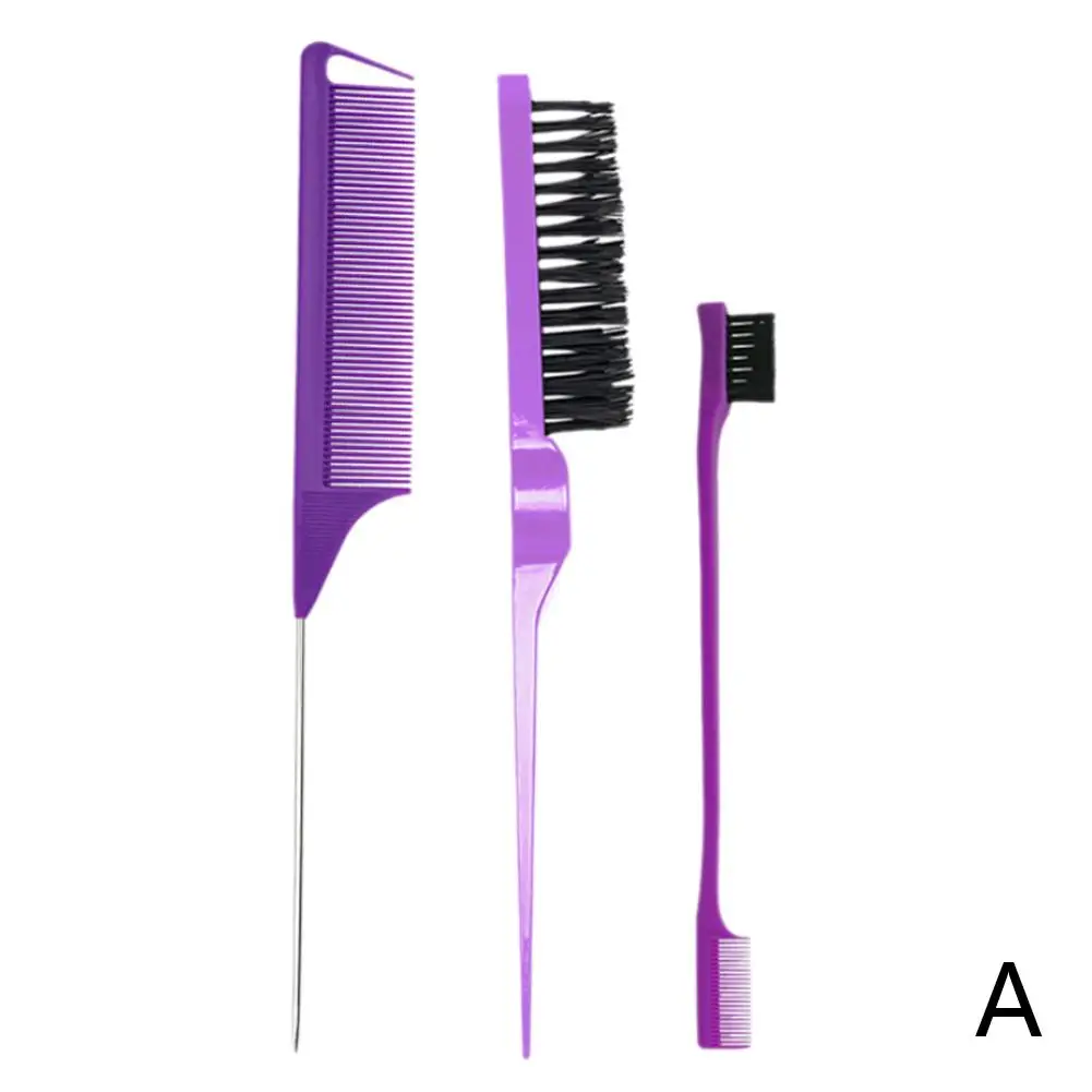 3Pcs Hair Styling Comb Set Hair Brush Rat Tail Comb Edge Brush Antistatic Hairdressing Hair Comb Heat Resistant Comb Kit