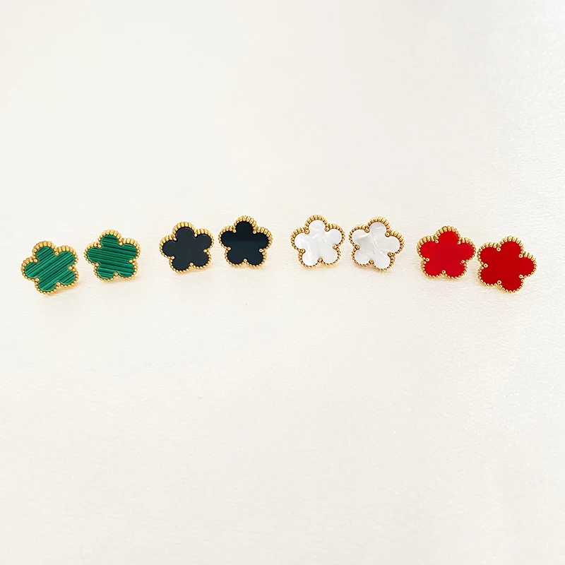 3Pcs Stainless Steel 316L Luxury Plum Blossom Plant Five Leaf Flower Necklace Earrings Bracelet for Women Gift Jewelry Sets