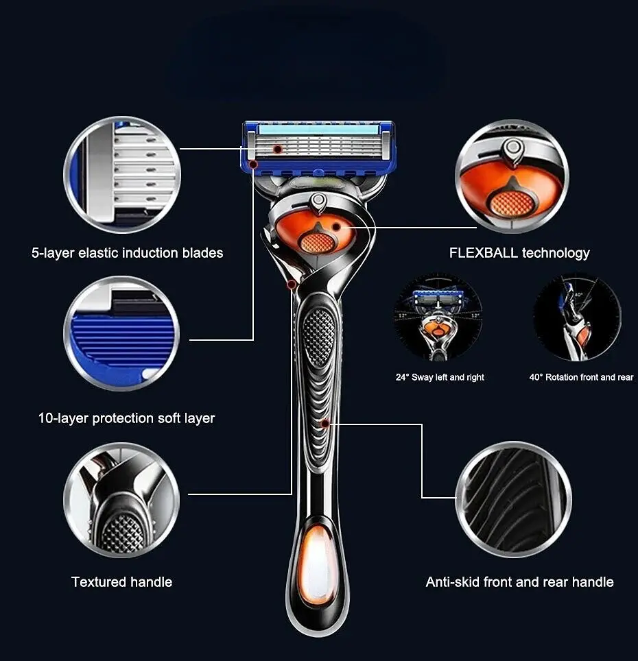 5-layer razor blade, high-end stainless steel manual razor, men's safety scratch resistant razor, suitable for hair cleaning