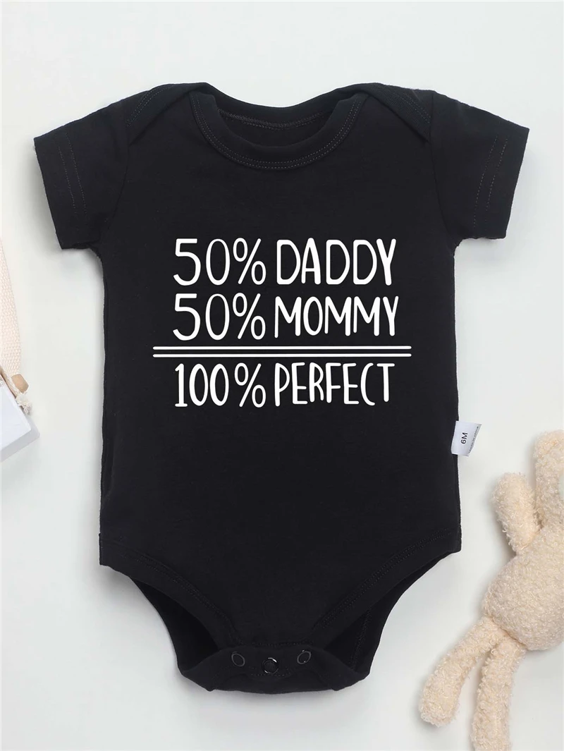 50% DADDY 50% MOMMY 100% PERFECT Letter Print Baby Romper