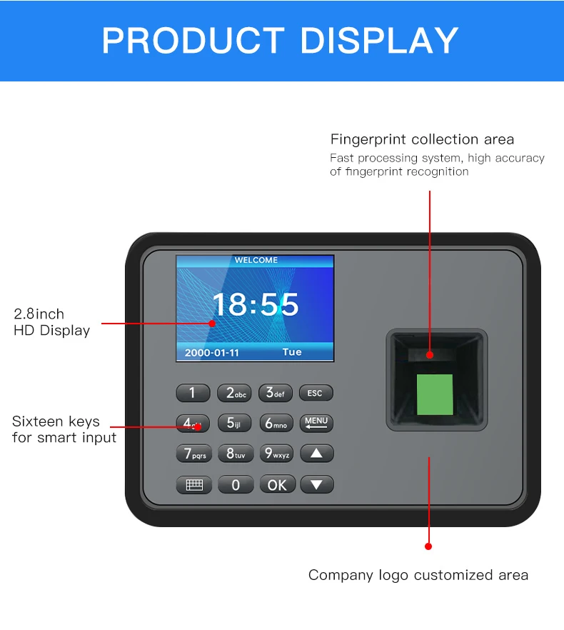 A7 Attendance Machine Password+Fingerprint 2.8 Inch Color Screen No need to download software Intelligent Report Generation