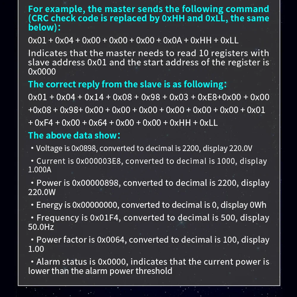 At present,it only supports reading and modifying slave address and power alarm threshold