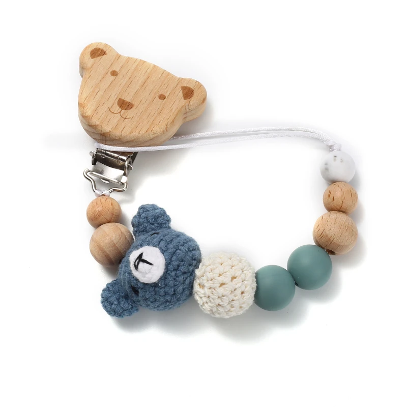 Baby Beech Wood Pacifier Clip Cartoon Animal Crochet Beads Silicone Nipple Chain For Teether Nursing Toys Baby Pacifier Chain