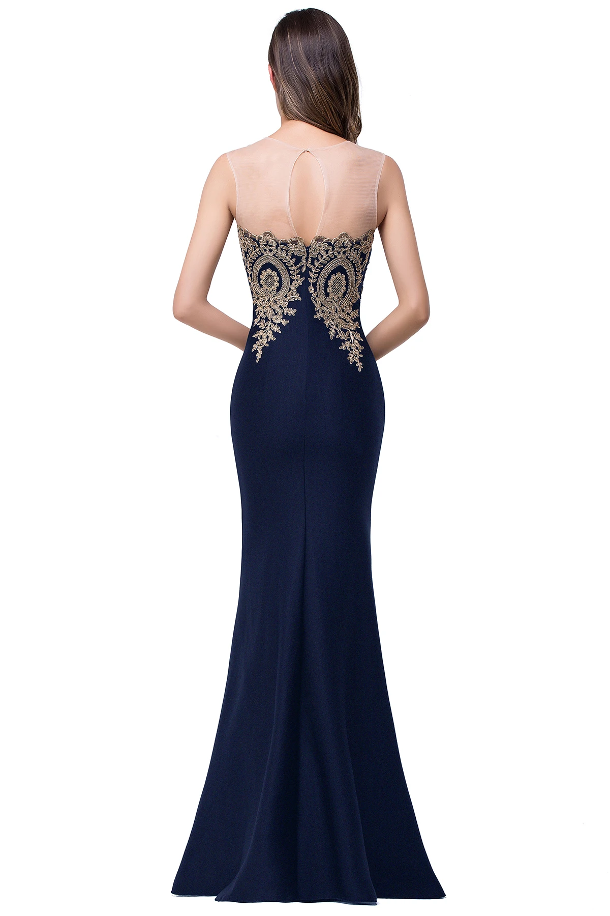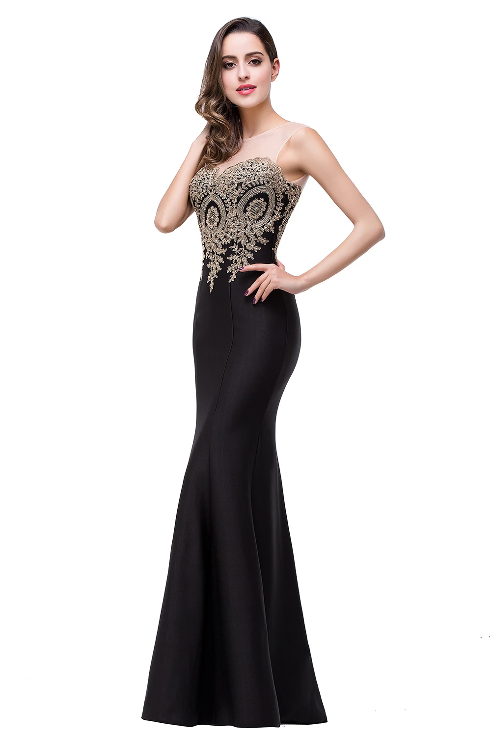 BABYONLINE Elegant Mermaid Evening Dress Women Sweetheart Illusion Golden Appliques Lace Wedding Party Prom Gown Robe de Soiree