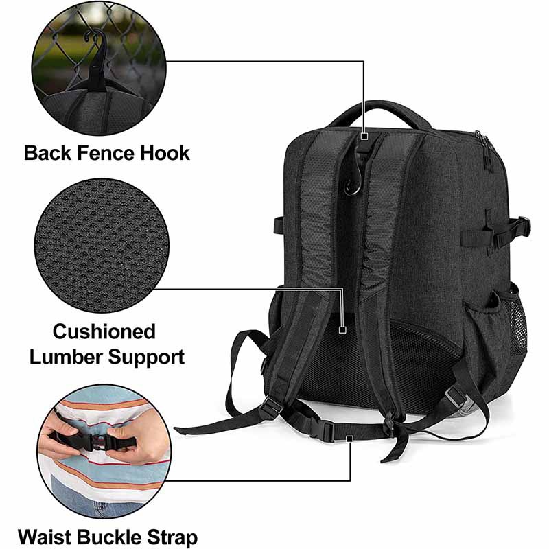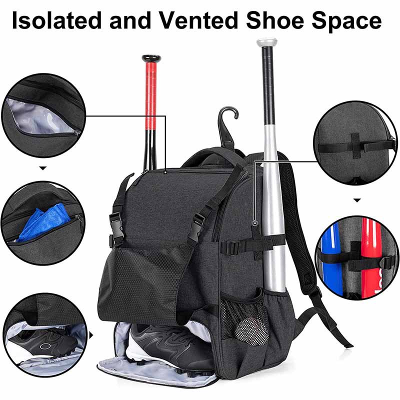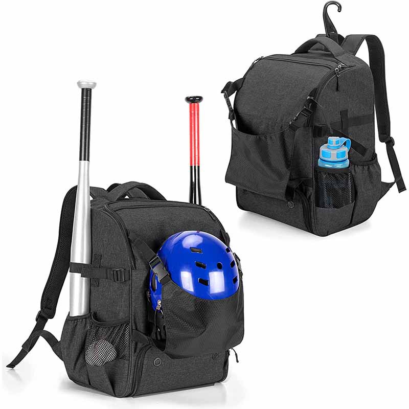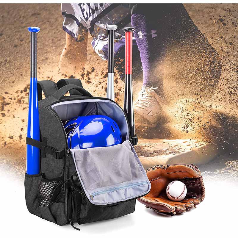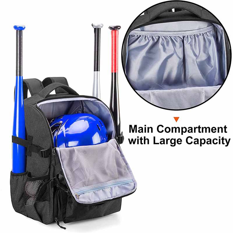 Baseball and Softball Backpack with External Helmet Holder, Made of 600D Nylon, Designed for 4 Bat Storage