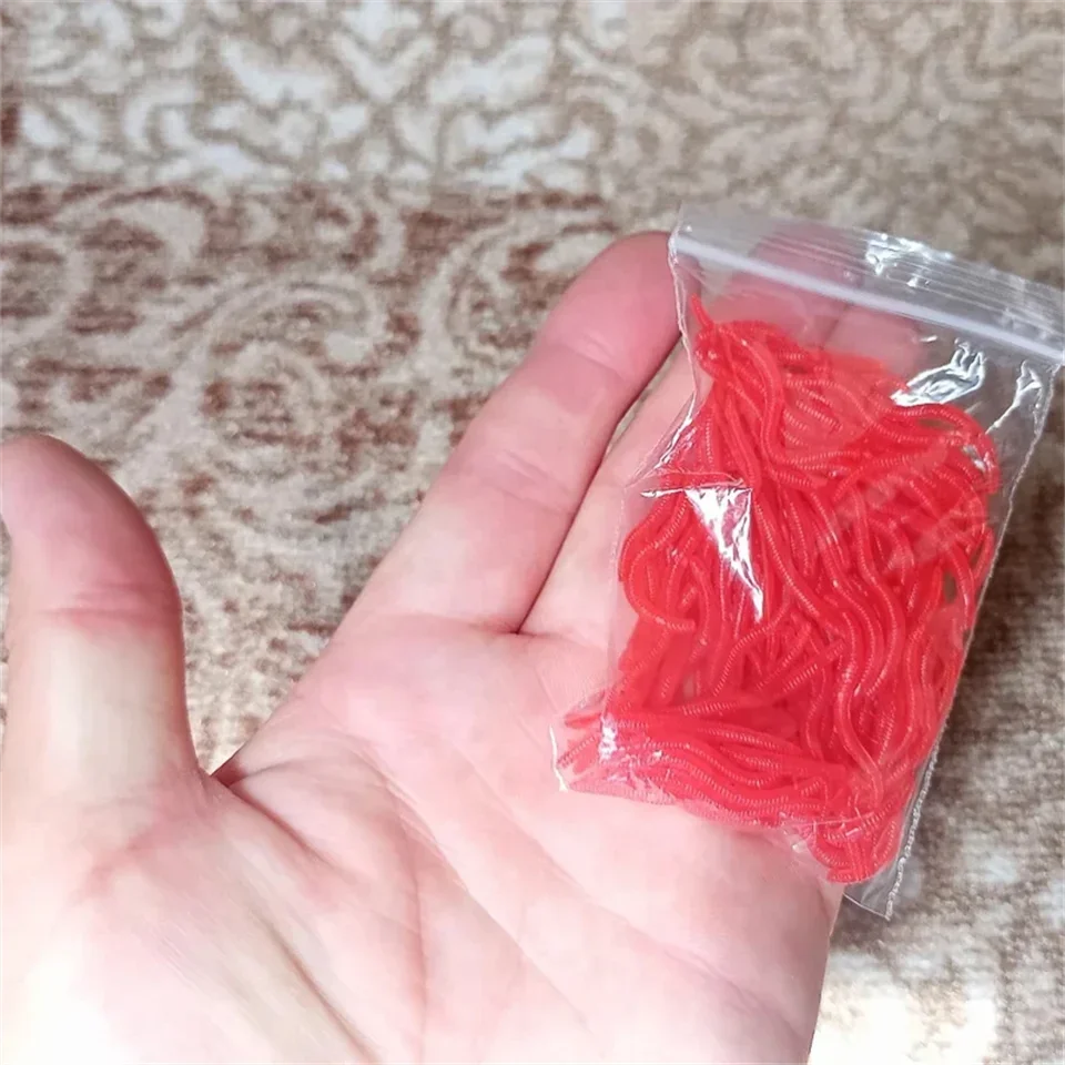 Bionic Red Worm Lure 100pcs 3.5cm Lifelike Silica Gel Fishy Artificial Red Worm Earthworm Bait Submerge Simulation Lure Pesca