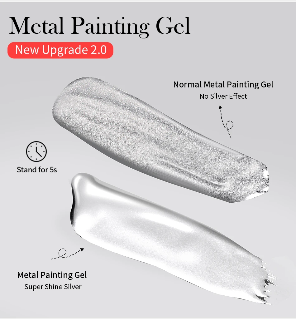 BORN PRETTY Sliver Metal Effect Line Flower Drawing Gel Soak Off Transparent Colors 5g Painting Gel Polish UV Nail Art Gel Varni