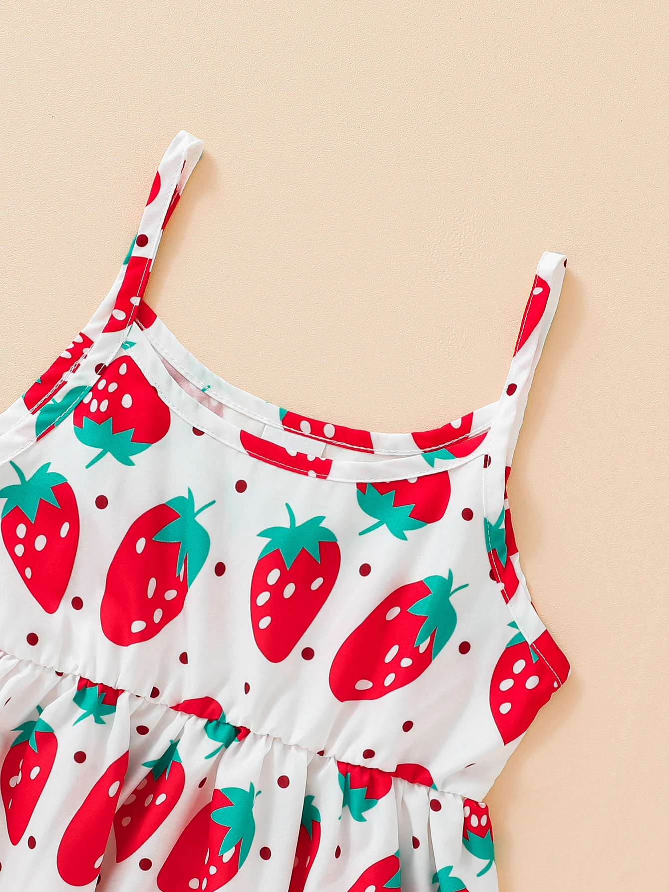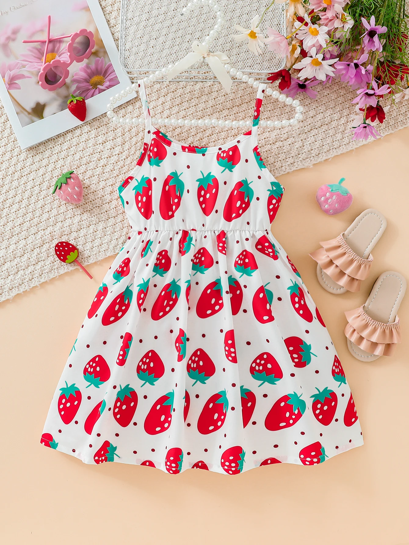 Children's Clothing Girl's Sling Strawberry Print Pattern Dress Sweet And Cute Summer Casual Dress for Girls Aged 3-7 Years