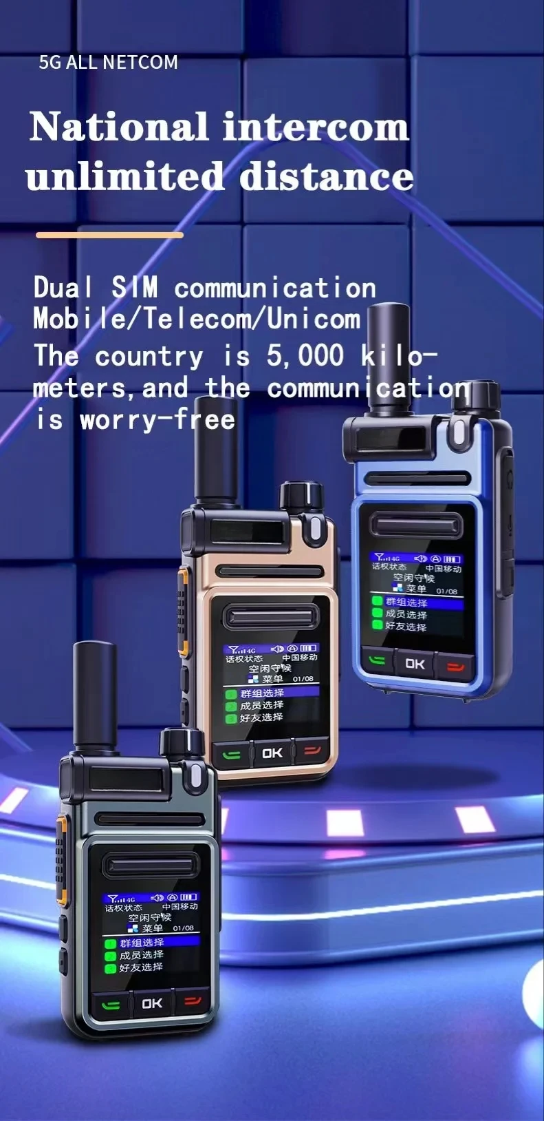 CT9 Global-Intercom 5G PoC Internet Two-Way Radio MINI Sim Card Walkie Talkie Long Range 5000km Pair (no Fee) Intercom Platform
