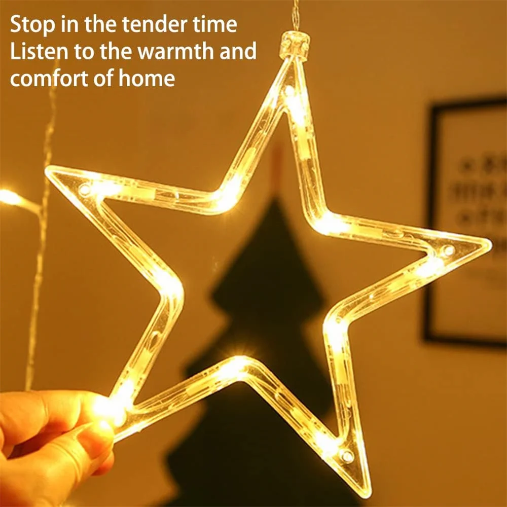 Curtain Lights, Christmas Moon Star Window Fairy String Lights for Indoor Window, Kid Bedroom, Patio, Front Porch, Camping, Gues