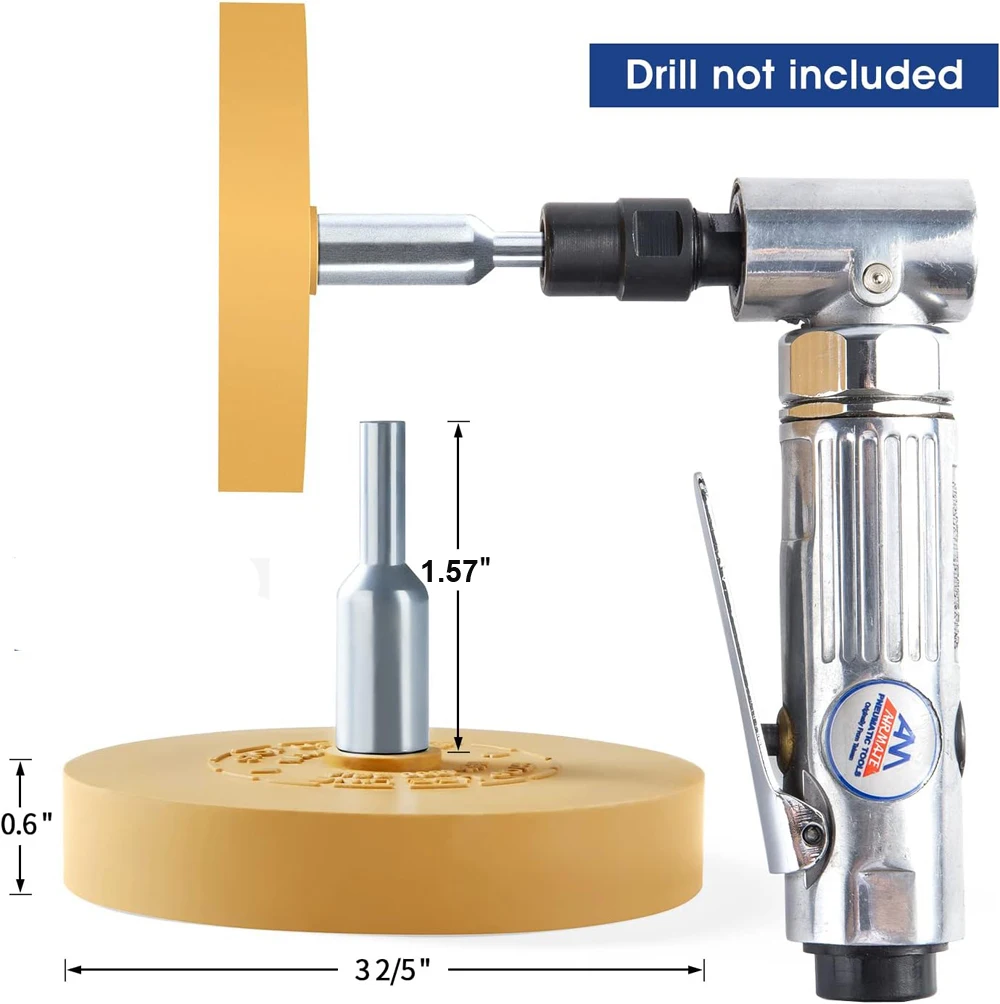 Advantage: Remover Eraser Wheel dramatically reduces the time spent on the removal of Pinstripes, Adhesive, Decals and Double Faced Tape SUPERIOR DESIGN.The best one.