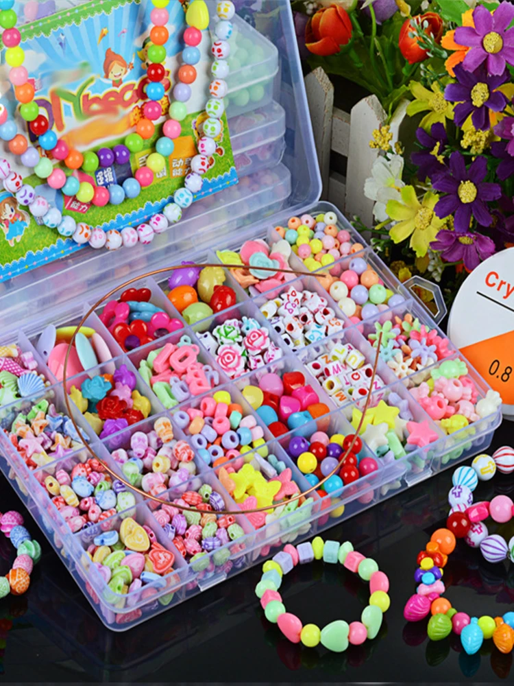 DIY Handmade Beaded Toy with Accessory Set Children Creative Girl Weaving Bracelet Jewelry Making Toys Educational Children Gift