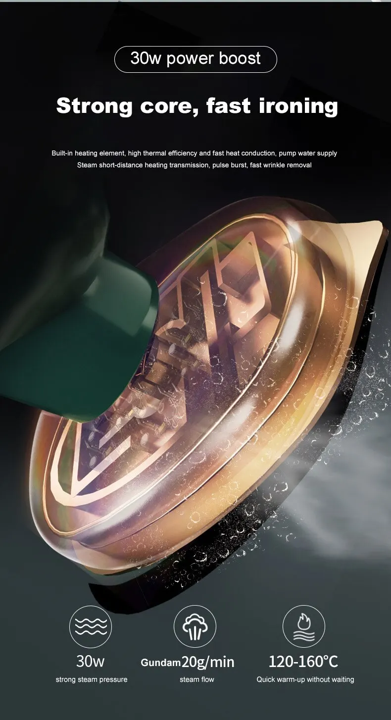 • Compact 30W Mini Steam Iron :This electric iron is compact yet powerful, with a 30W capacity that ensures quick and efficient ironing. Its mini size makes it easy to carry and perfect for travel or dorm use.