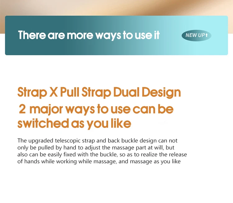 3. Upgrade the design of retractable straps and buckles. There are two ways to use it. Not only can you adjust the massage area by hand, but you can also design a buckle to fix the massager, allowing you to work while massaging and freeing your hands.