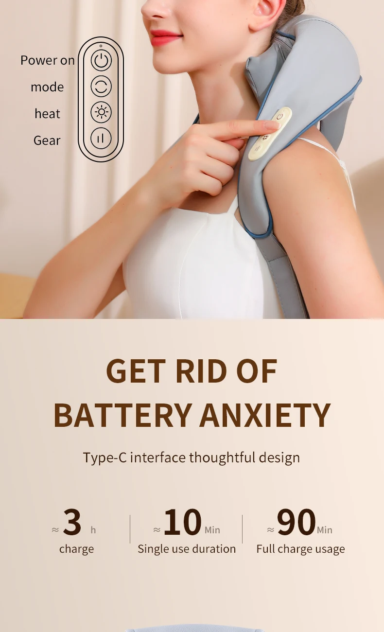 minutes, automatically turn off when the time is up to avoid excessive massage damage to muscles. Lightweight, not stuffy, comfortable experience.