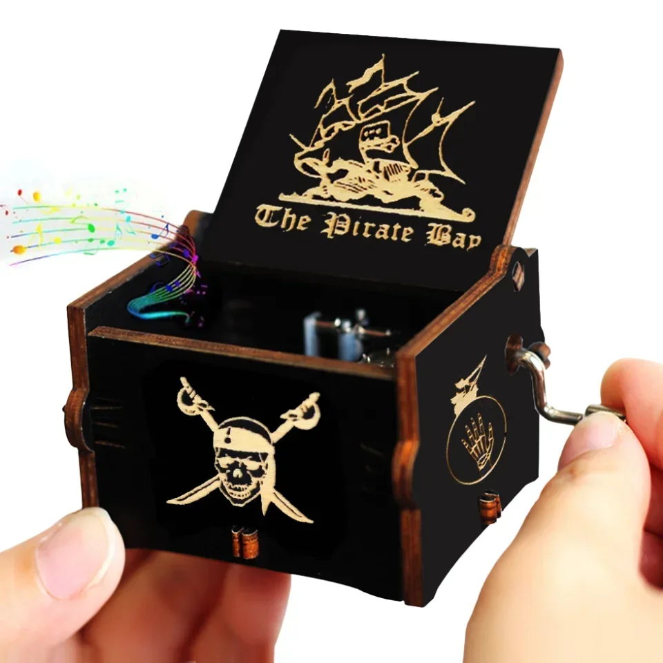 Hot Antique carved Wooden Hand Crank Jurassic Park Music Box figure Happy Halloween Christmas Birthday Gift